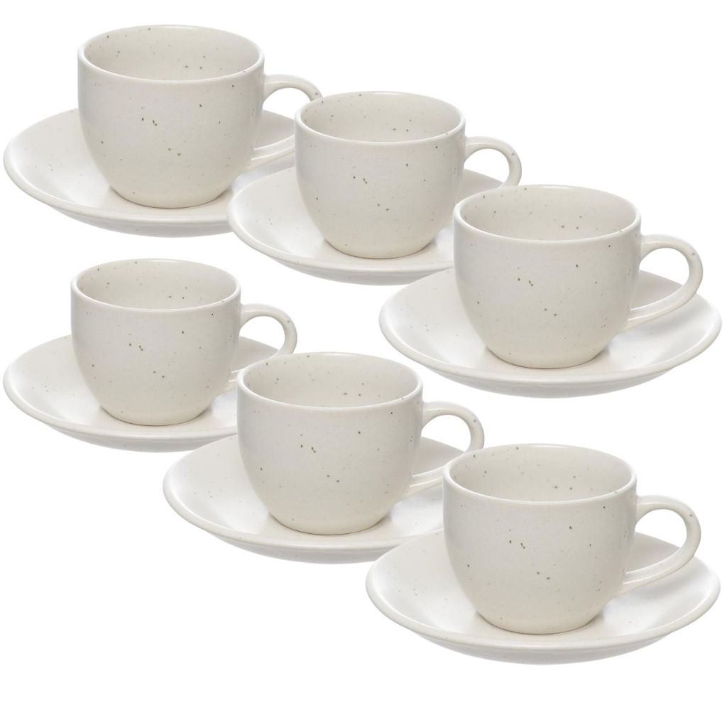 Jogo de 6 Xícaras para café cha Wellig em ceramica 200ml e 90ml cinza terracota branco e verde