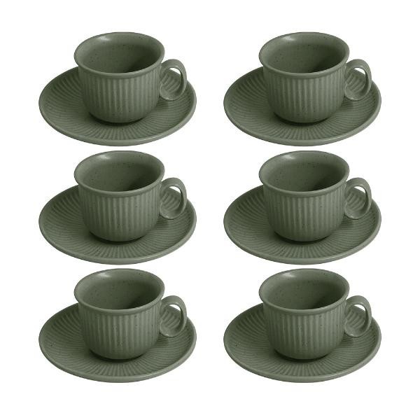 Jogo de xícaras café em cerâmica L'Hermitage Wellig 90ml 12 peças verde