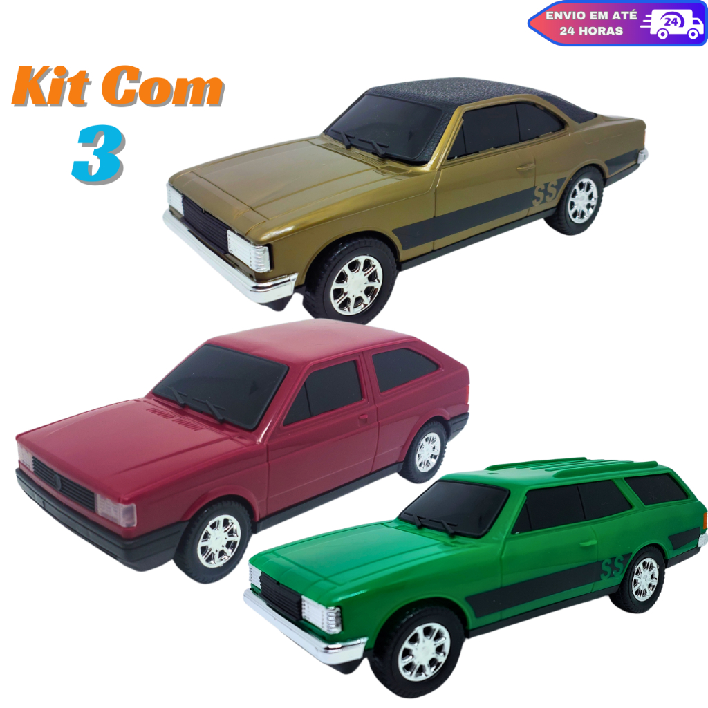 Kit 3 Carrinhos Brinquedo Classicos Antigos Opala SS Caravam SS Gol Quadrado Coleção