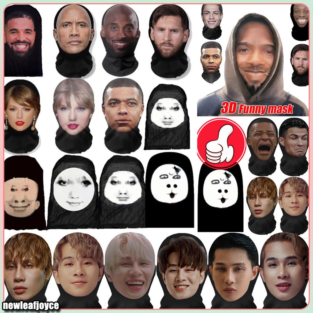 Máscara Sem Costura 3D Engraçado Rosto Impresso Lenço De Cabeça Pessoa Famosa Protetor Solar De Seda Gelo Unissex Halloween Cosplay