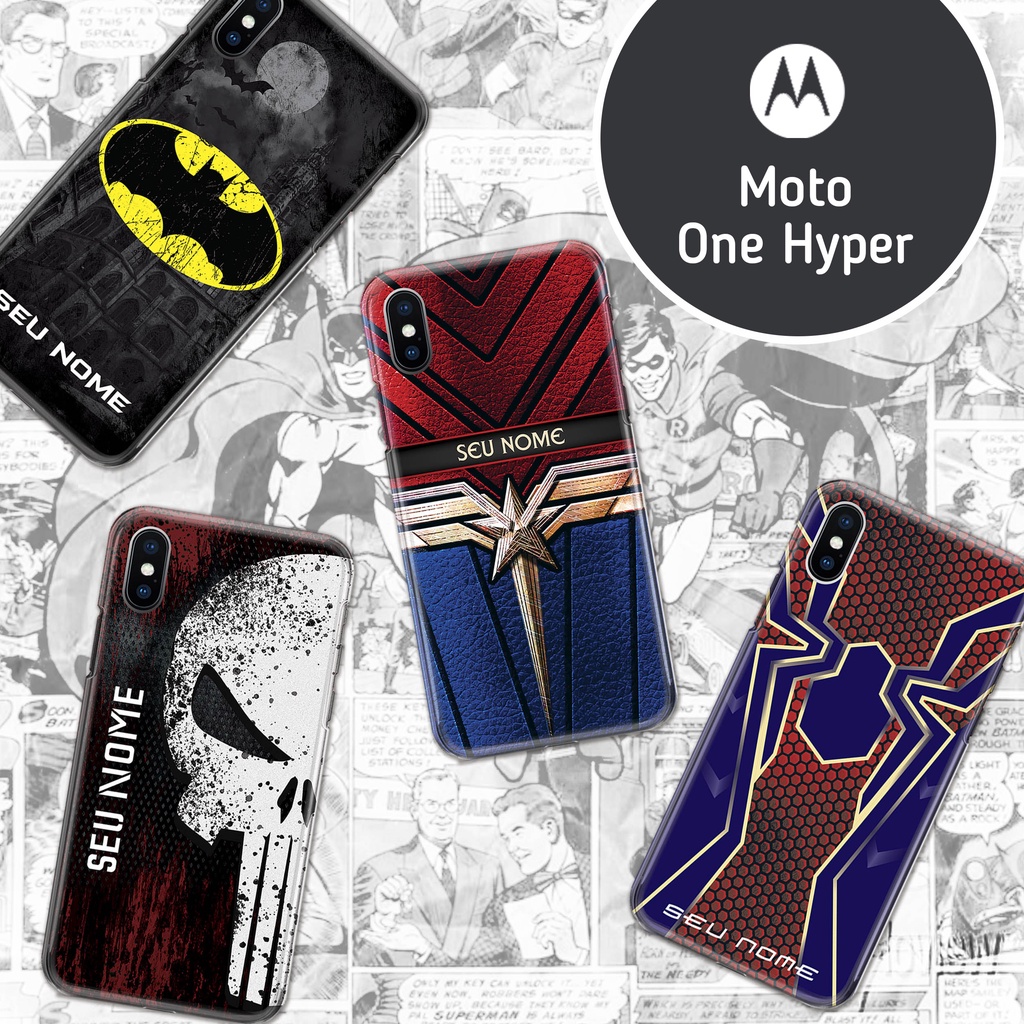 Capa Capinha - Motorola Moto One Hyper - Super-Heróis Personalizada com Seu Nome