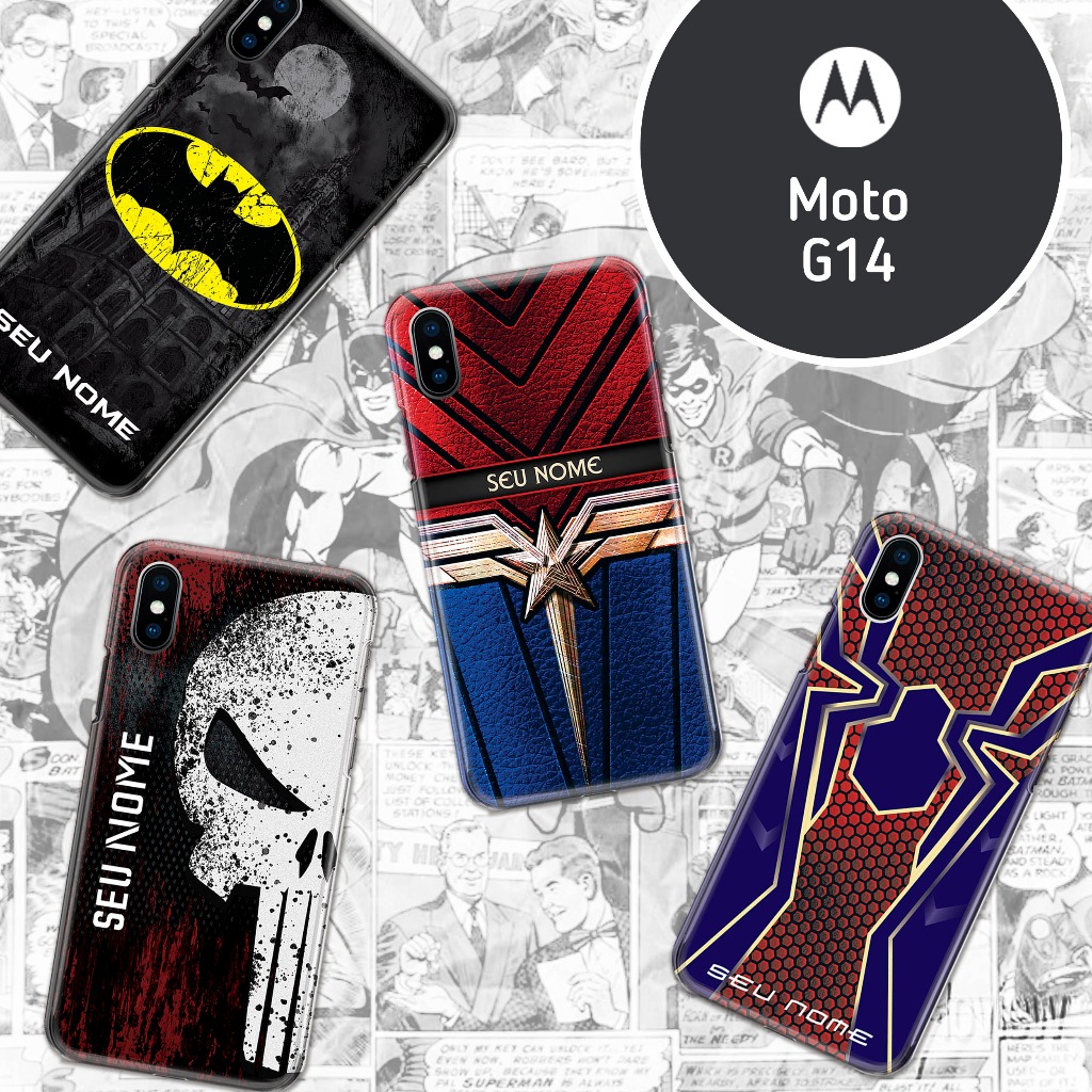 Capa Capinha - Motorola Moto G14 - Super-Heróis Personalizada com Seu Nome