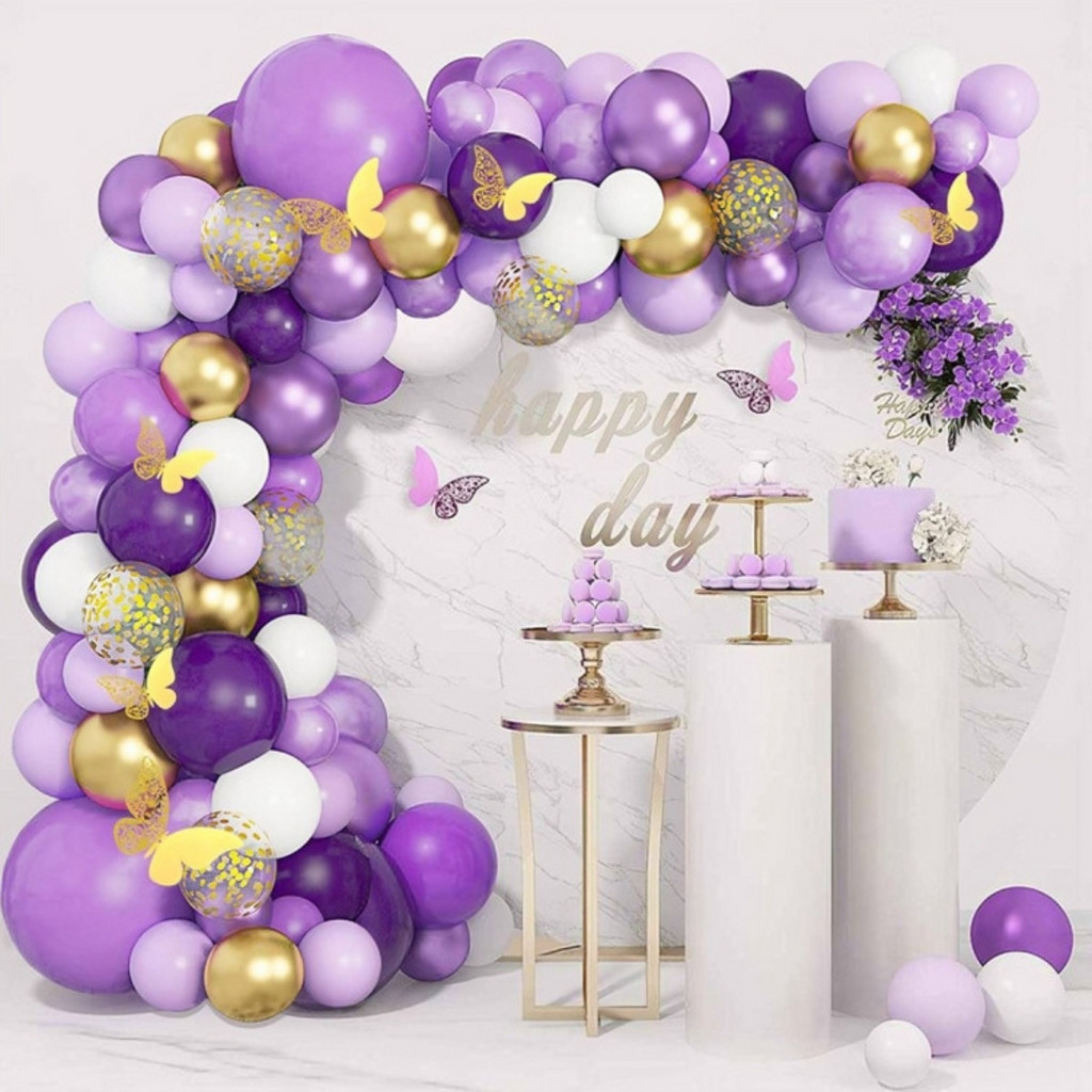 Kit Baloes 120 Festa Arco Desconstruido Bexiga Lilás Branco+Fita Bexiga Para Decoração De Festa Aniversario