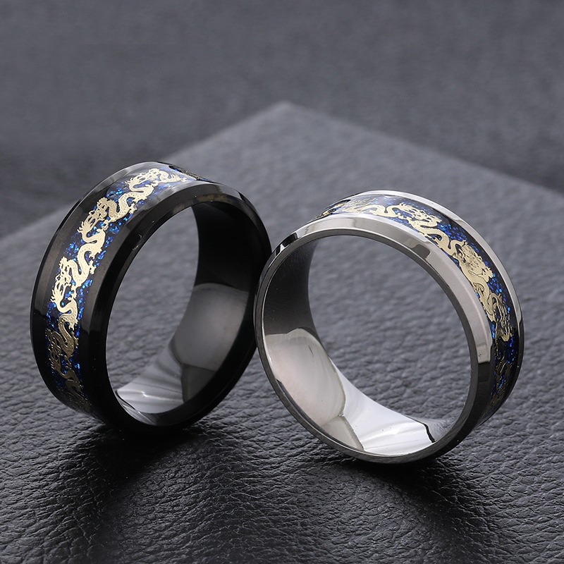 Padrão Dragão De 8mm De Largura Aço Inoxidável Colorfast Titânio Masculino E Feminino Anel/Acessórios De Joalheria