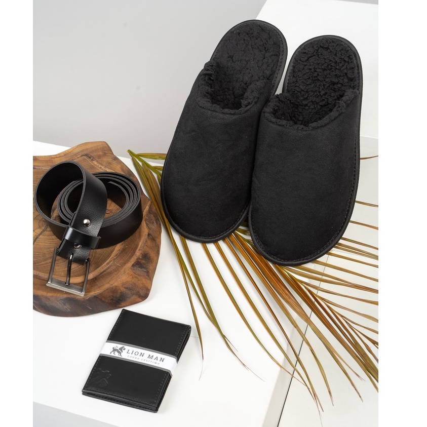 Kit 1 Pantufa Masculina de Lã + 1 Carteira de Couro Legítimo + 1 Cinto Masculino