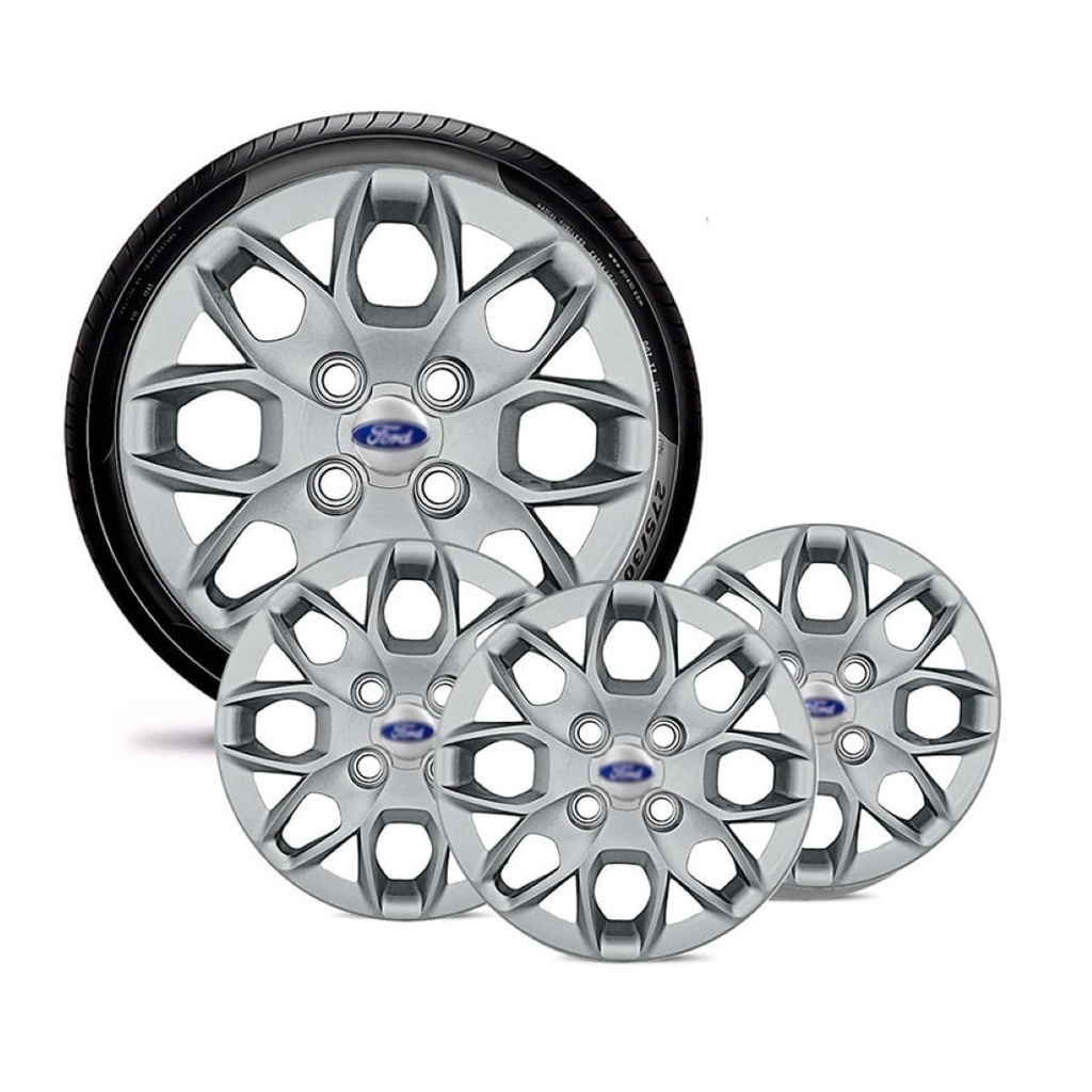 Jogo 4 Calota Carros KA Fiesta Ecosport Focus Todos Aro 14 Prata Emb Prata
