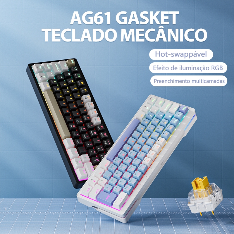 ZIFRIEND AG61 Teclado Gamer Mecânico 60% com fio Padrão ABNT2 Hot-swap Led RGB Escritório azul branco preto win/mac