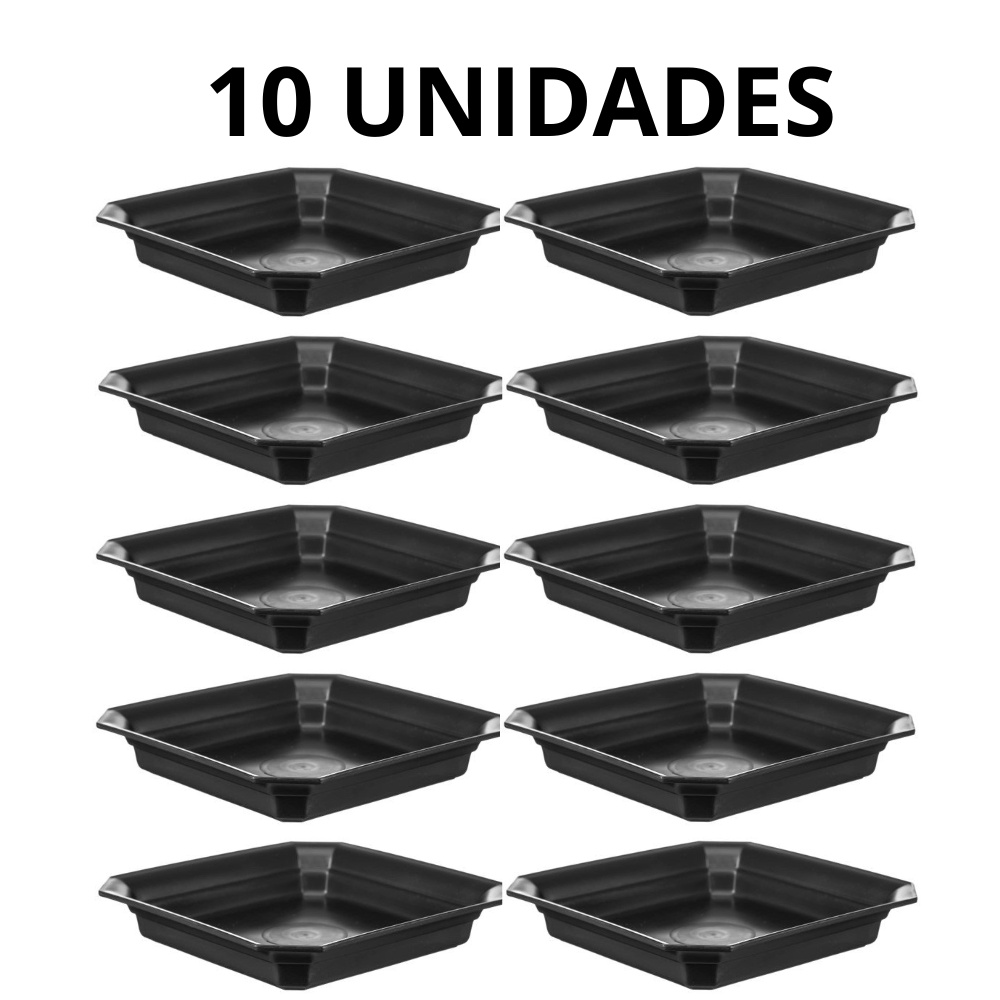 Kit 10 Prato Para Vasos de Planta Quadrado Nº 1 Preto 13x13x1,5cm Pequeno