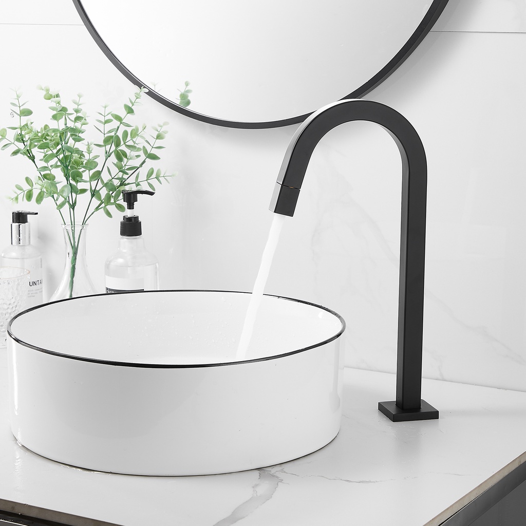 Torneira Bica Alta Luxuosa Preta Fosca Para Pia De Banheiro Metal de Água Fria