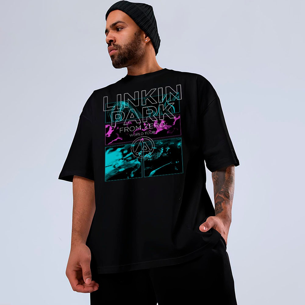 [Camiseta Premium em Algodão Puro]GXG Camiseta Básica e Oversized Algodão Linkin Park From Zero World Tour Unissex