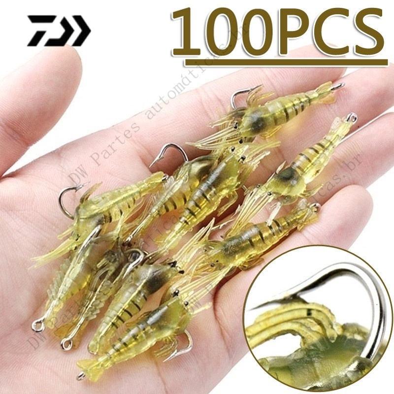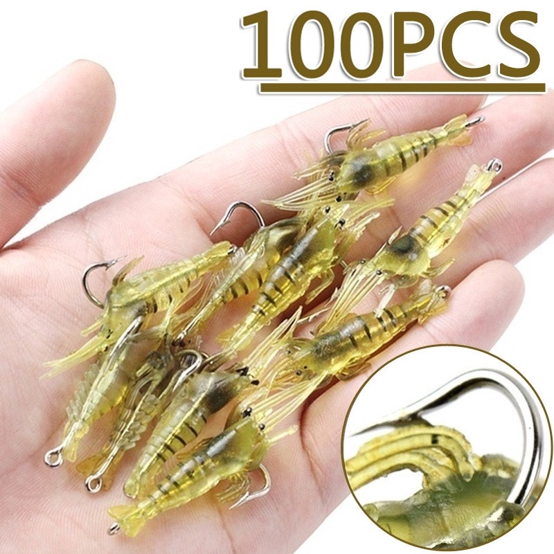 10 ~ 100 Pçs 4cm Isca Artificial Flexível Para Pesca De Camarão Com Anzóis