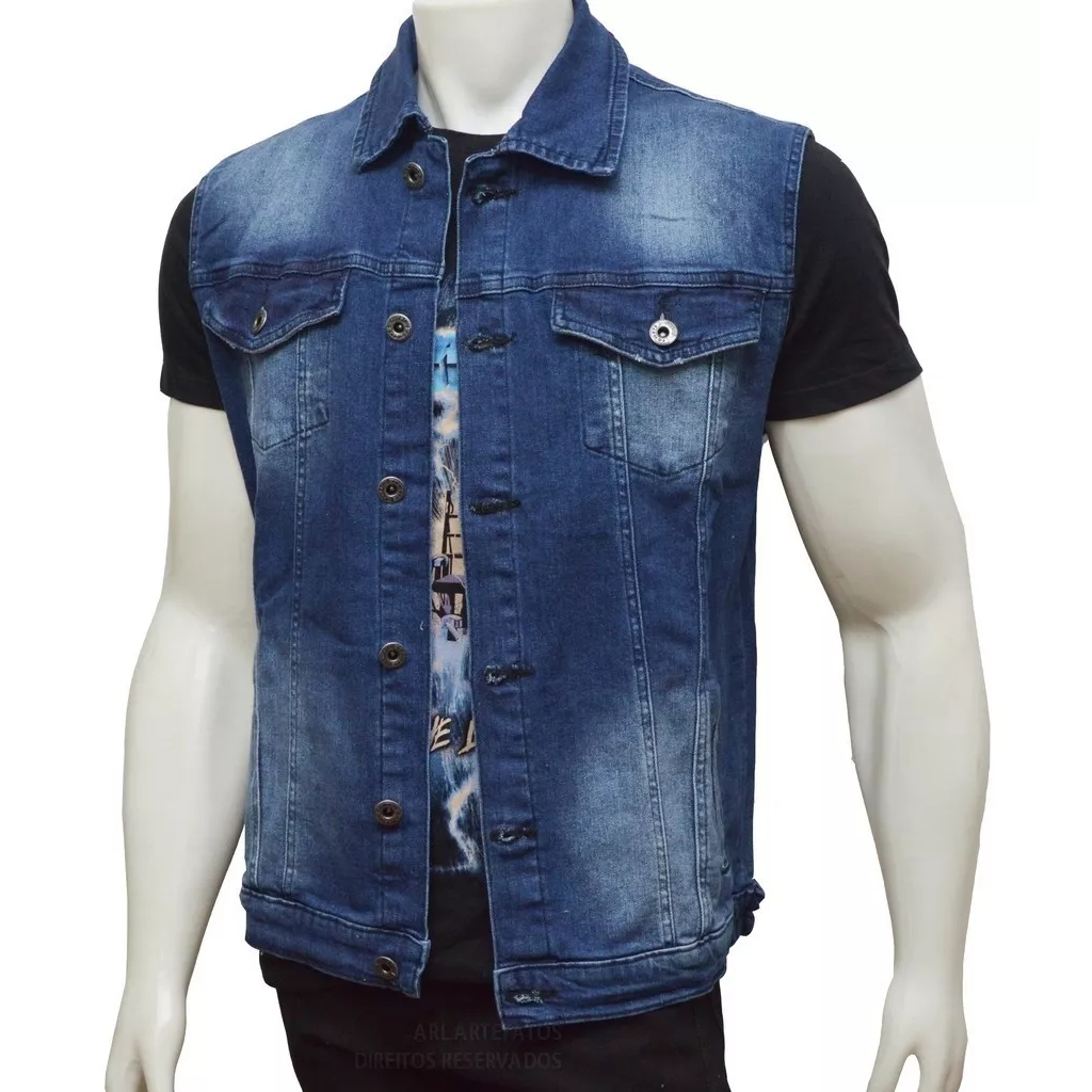 Colete Jeans Masculino Altíssimo Padrão Com 6 Bolsos Refbx