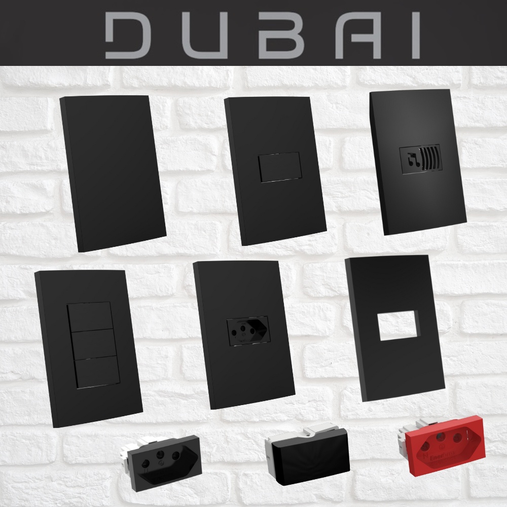 Tomada Interruptor Preto 10A 20A Linha Modular - Dubai