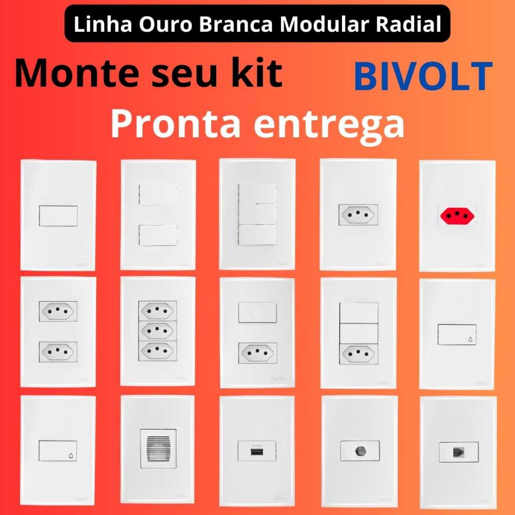 Tomada Interruptor 10A 20A Linha Ouro Branca Modular RADIAL Tomada Apagador Paralelo Simples
