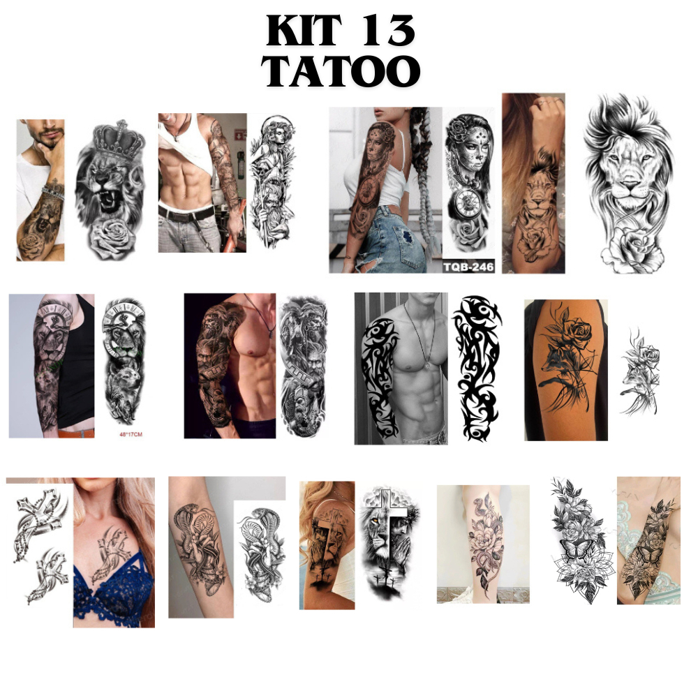 Kit 13 Tatuagem Temporária Tattoo Fake a Prova D'água Unisex Realistas 3D