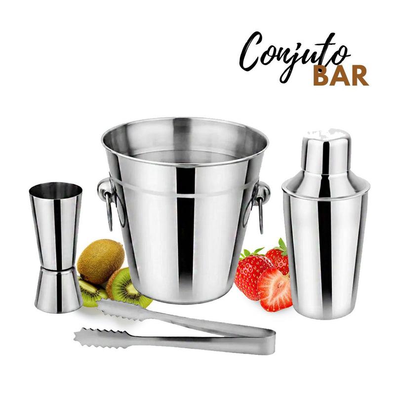 Kit Barman Coqueteleira Balde Pegador Dosador Aço Inox 4 Pçs