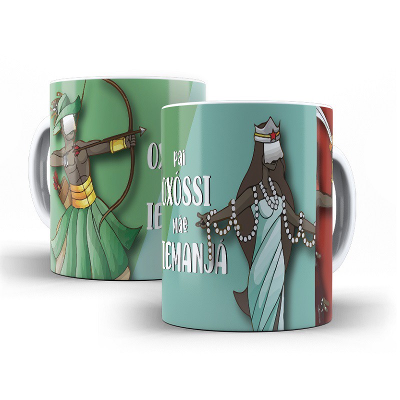 Caneca Porcelana Umbanda Candomblé Orixás Oxóssi E Iemanjá