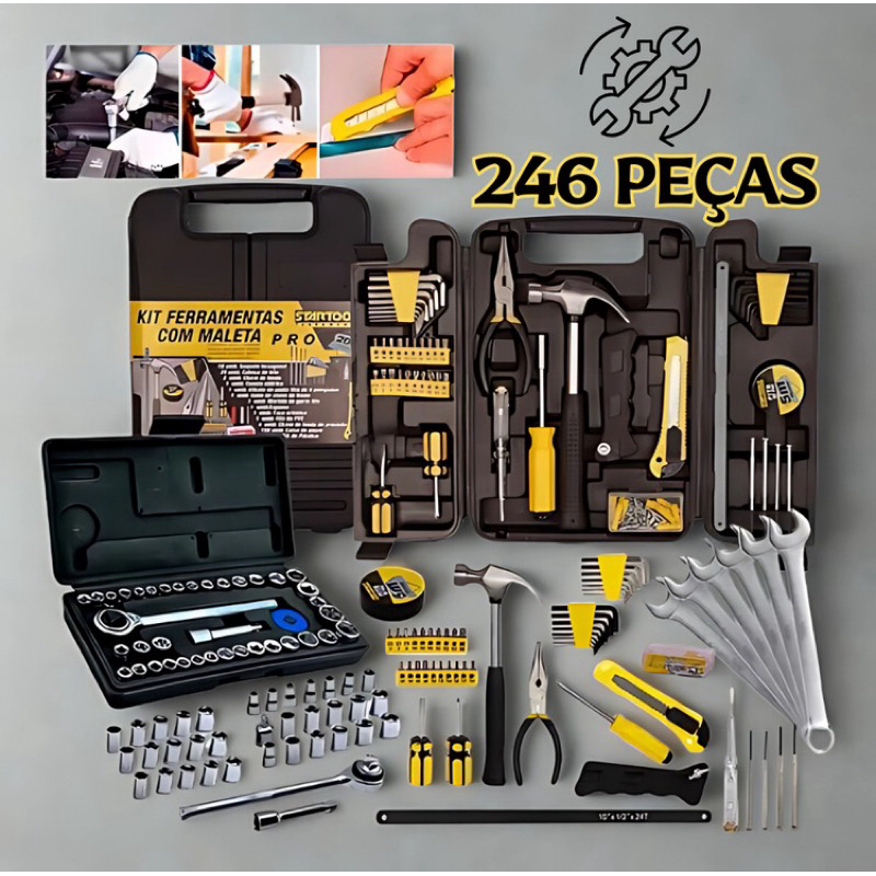 Kit Jogo de Ferramentas 246 Peças com Maleta Completa + Soquetes e Chave Combinada