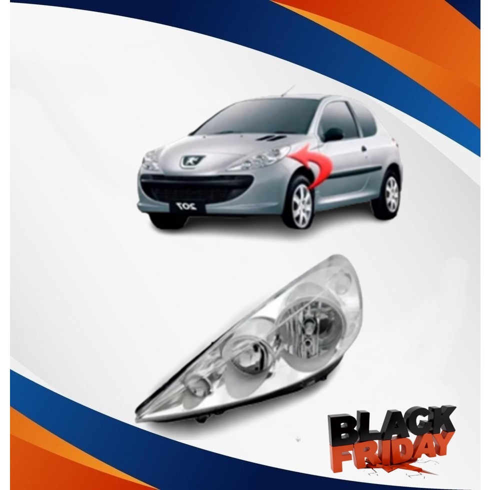 Farol Principal Esquerdo Peugeot 207 Marca Yh Cromado Ano: 2009 Até 2015 Cód:YH-16-003L