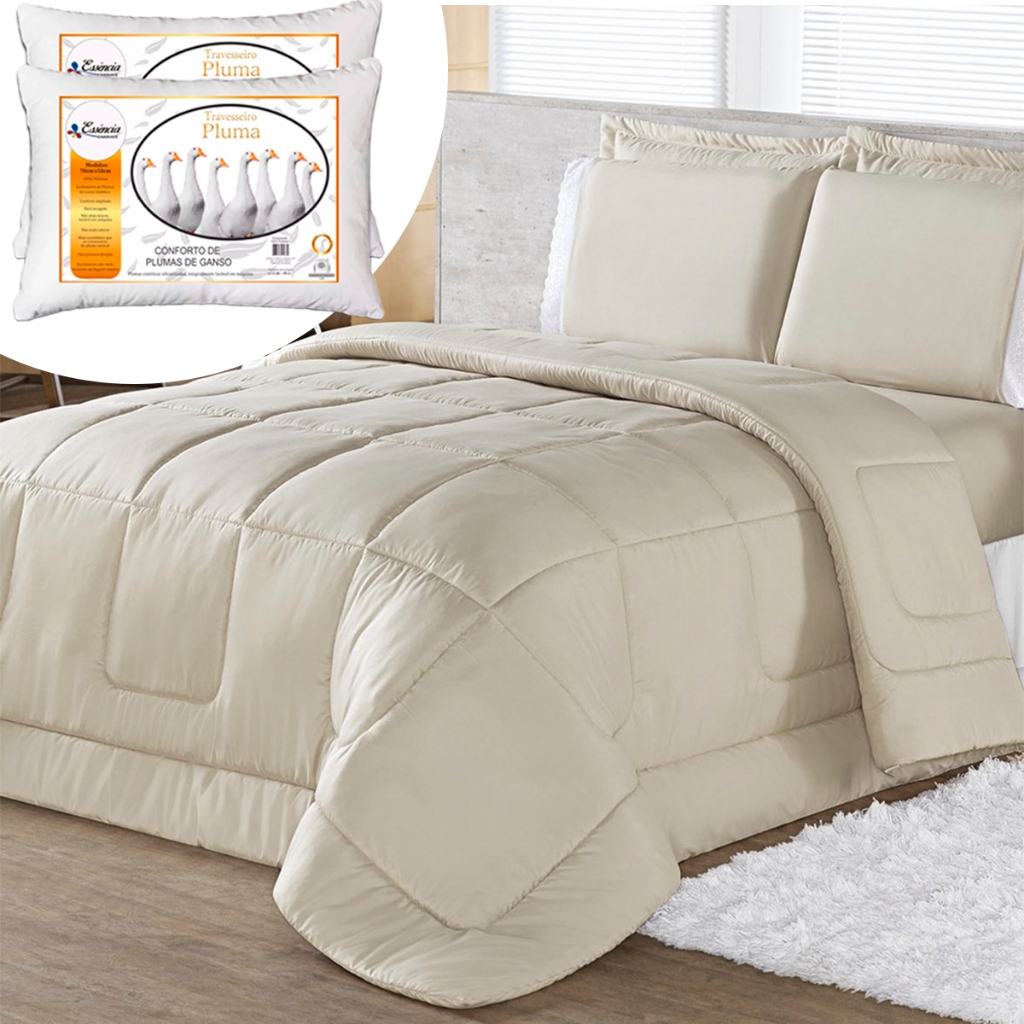 Kit Oliveira 6 Peças Para Cama + 2 Travesseiros Penas e Plumas de Ganso