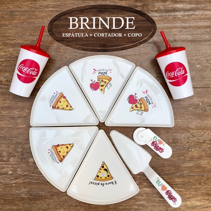Kit 6 Pratos Fatia De Pizza Triangular + Cortador + Espátula + Copo