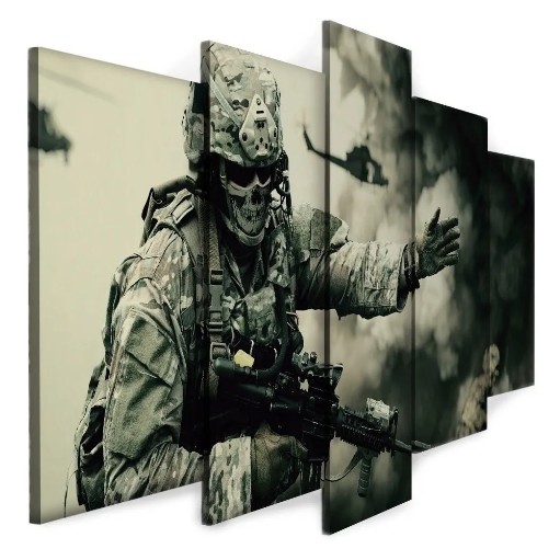 Quadro decorativo guerra combate soldado mosaico counter strike call of duty 5 peças sala quarto cozinha e escritório decoração