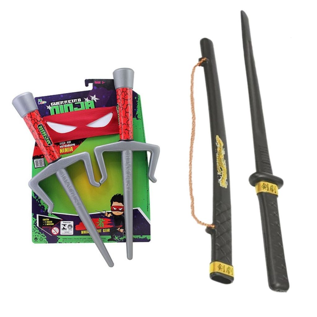 Espada De Brinquedo Infantil Ninja Samurai + 2 Adaga + Faixa