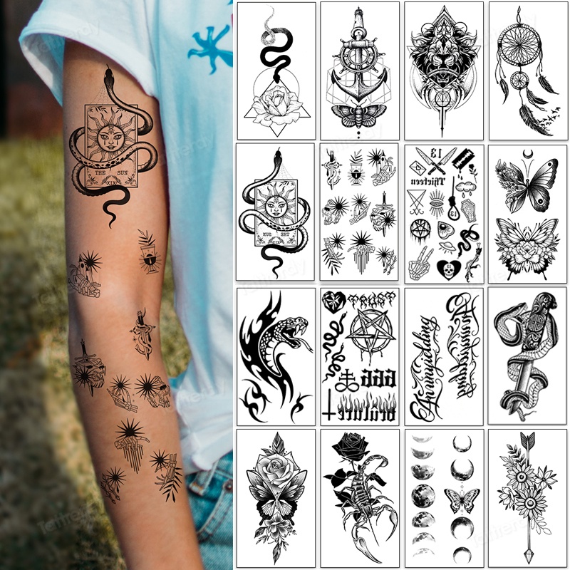 12Pcs Tatuagem De Transferência De Água Pequena Lua De Sol Arte Corporal De Cobra À Prova D'água Tatuagens Temporárias Falsa De Para Mulher
