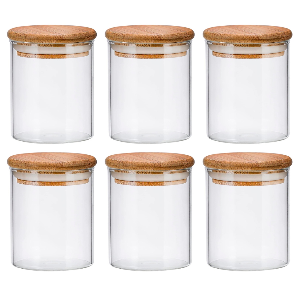 Kit 6 Pote de Vidro 500ml Com Tampa De Bambu herméticos porta mantimentos jogo potes cozinha tempero