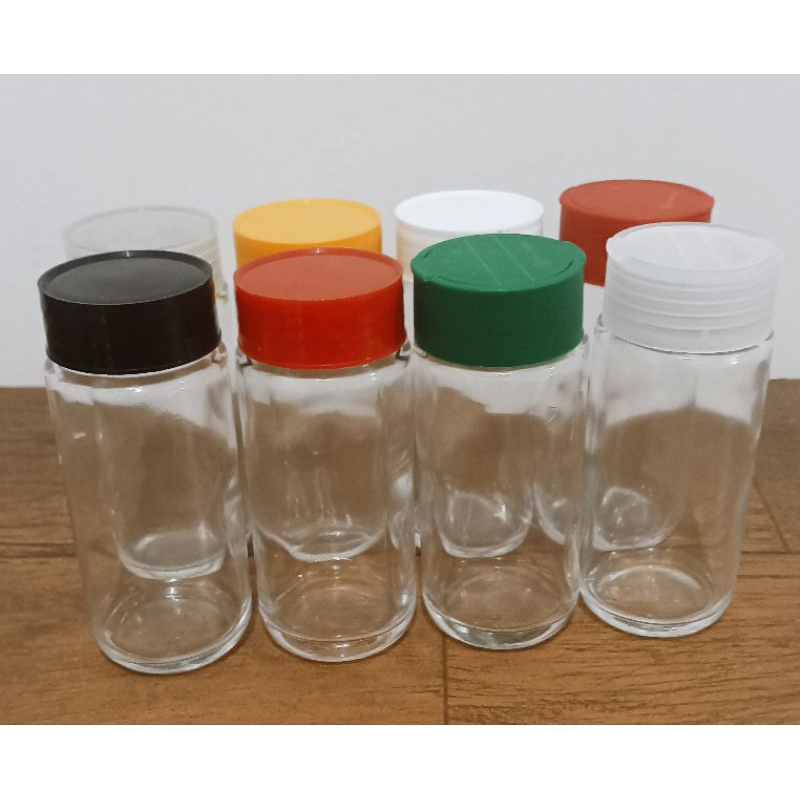 Kit 6/12/18 Potes de vidro 100ml com tampa plástica fechada ou 2 abas, diversas cores, porta temperos.