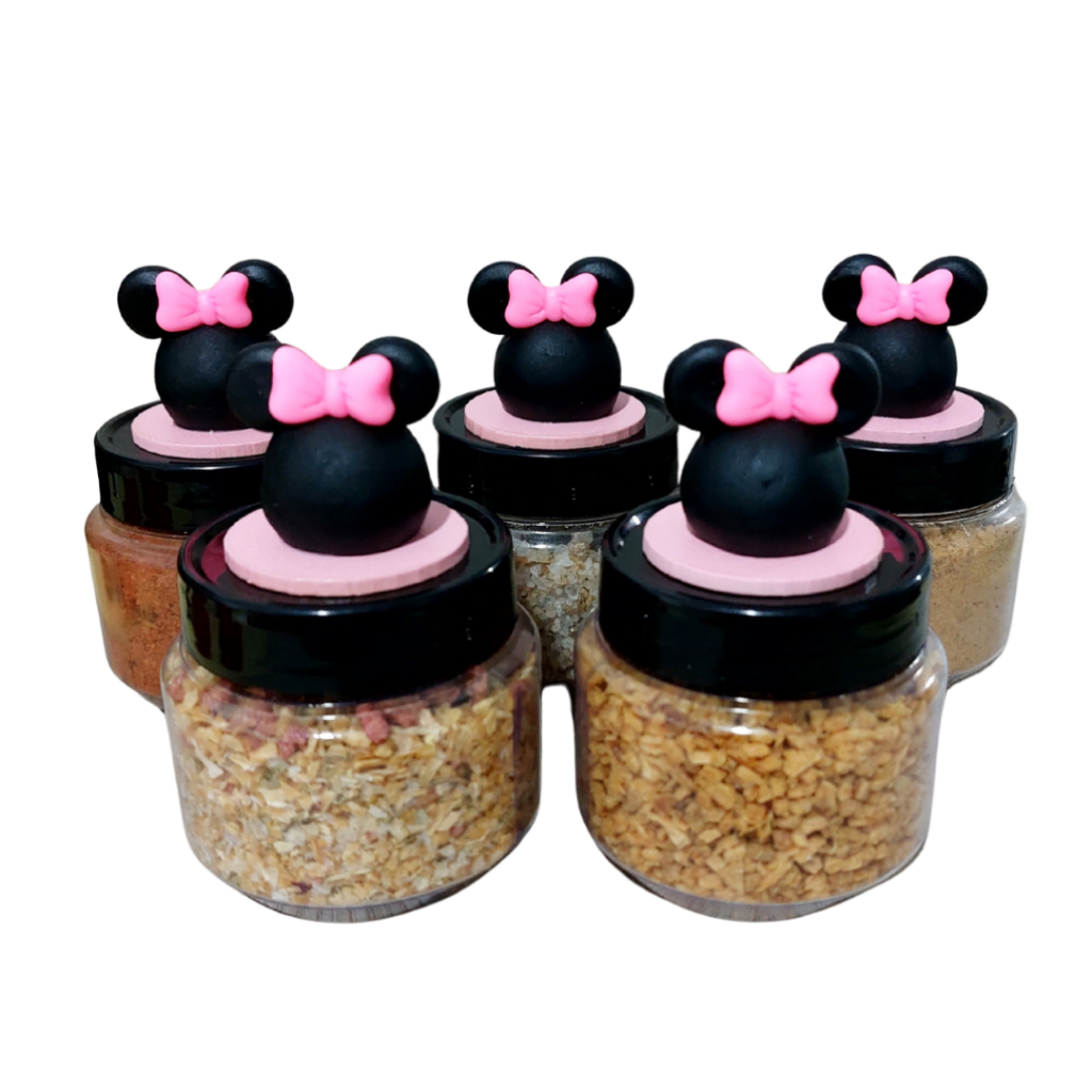 Kit de potes porta tempero com 5 ou 6 potes minnie pote de pvc 120ml