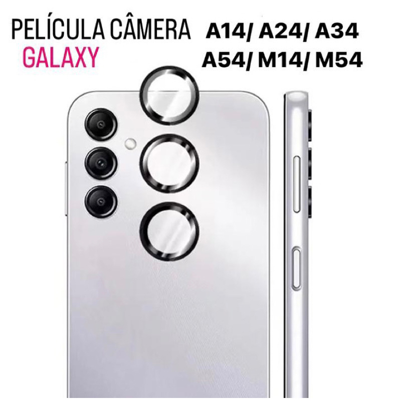 KIT 3 Peças Película Protetora De Câmera Samsung Galaxy A14/A34/A54/A24/M14/M34/M54 Protetor Da Lentes com Anel De Metal