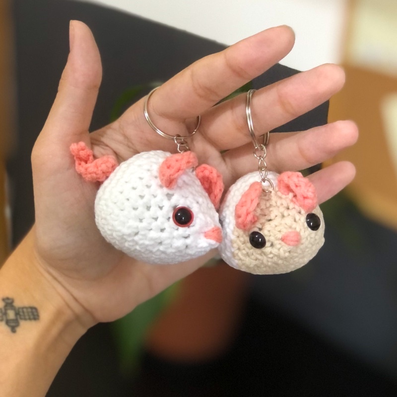 Chaveiro de ratinho amigurumi / chaveiro de crochê rato twister, camundongo, hamster
