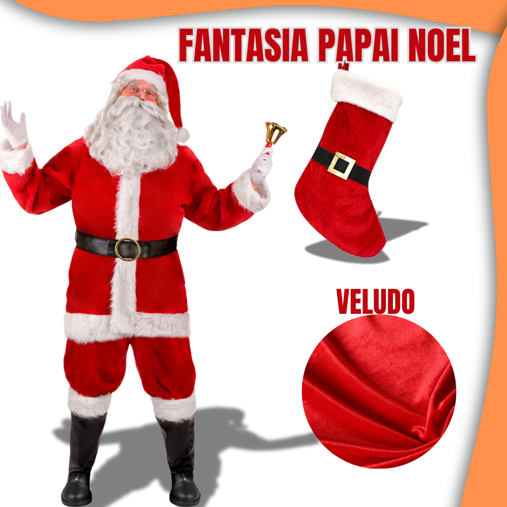 Roupa Fantasia de Papai Noel de Feltro Luxo Tamanho Único com Blusão, Calça, Gorro, Cinto e Barba 5 Peças + Envio Rápido e Garantia