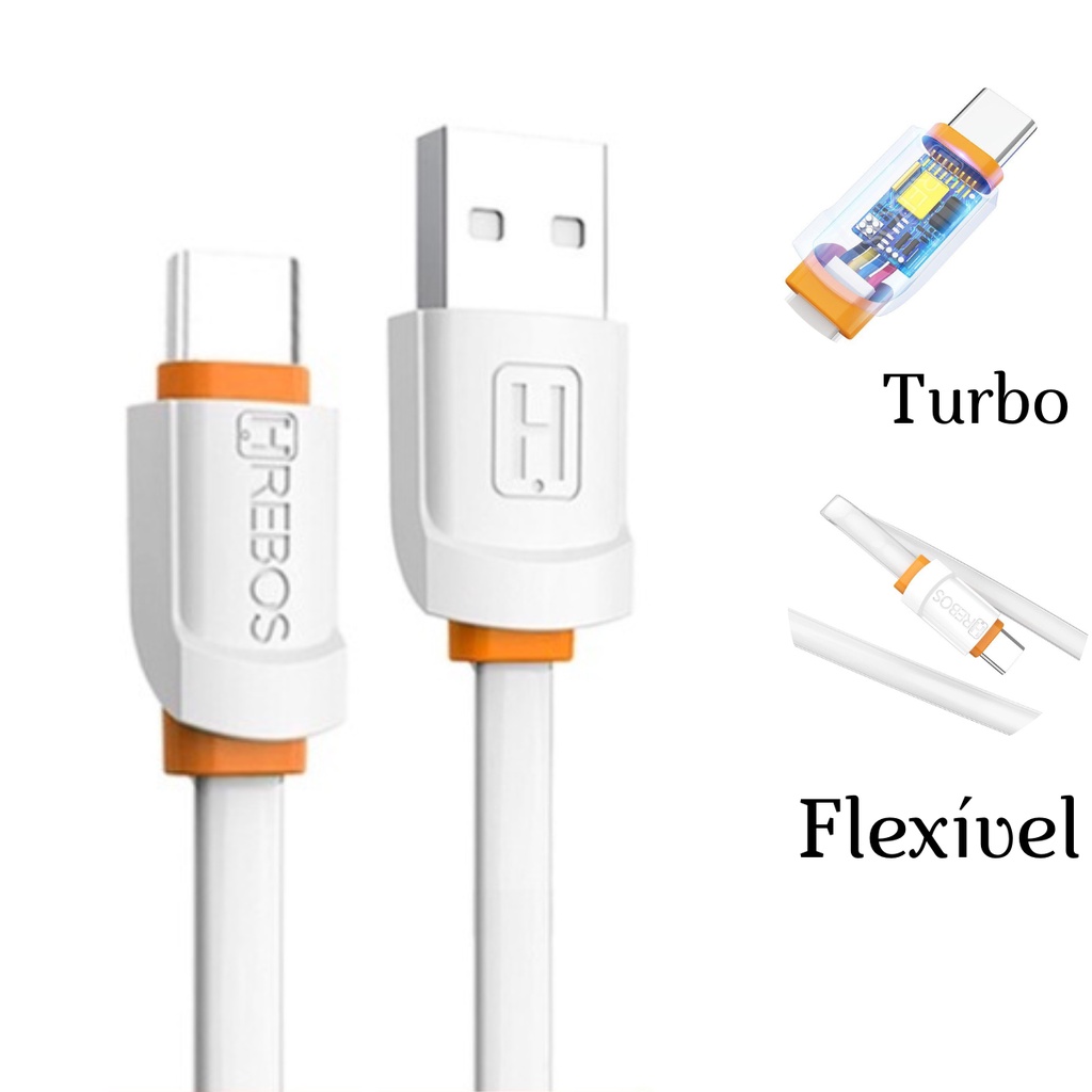 Cabo usb Tipo c Turbo 3.0 Carregamento e Dados 1,2 metros cabo Flexível Hrebos (Hs-124)