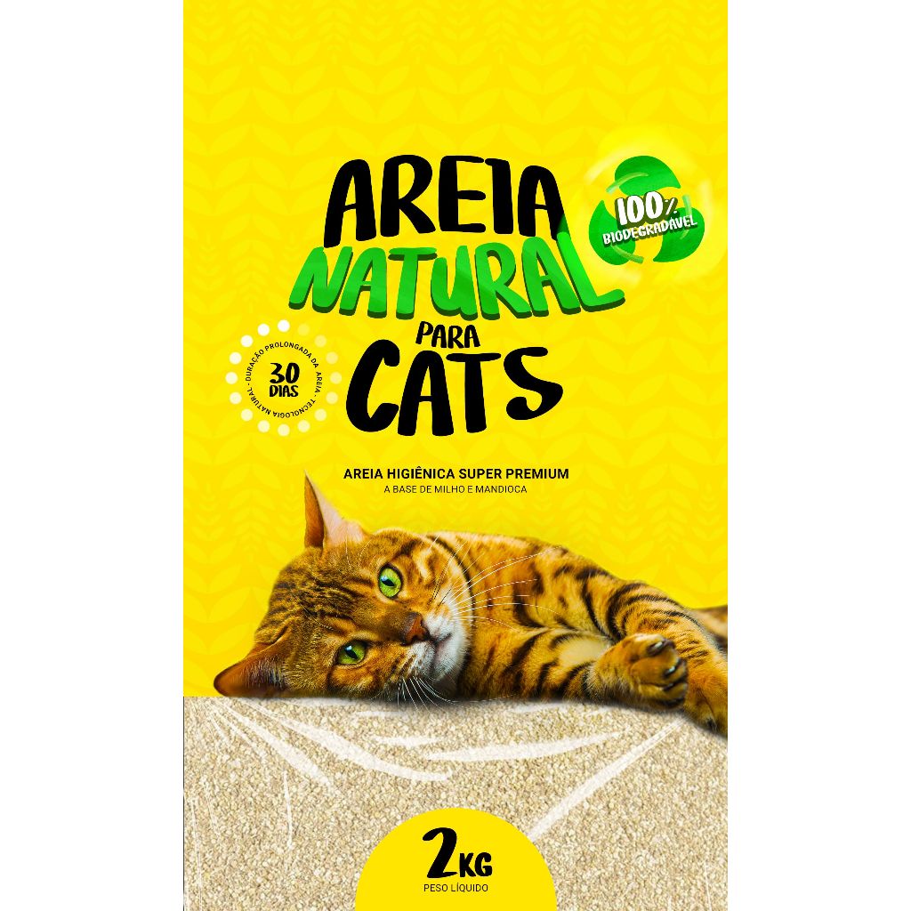 AREIA HIGIÊNICA NATURAL BIODEGRADÁVEL MILHO E MANDIOCA PARA GATOS TIGER CATS 2KG