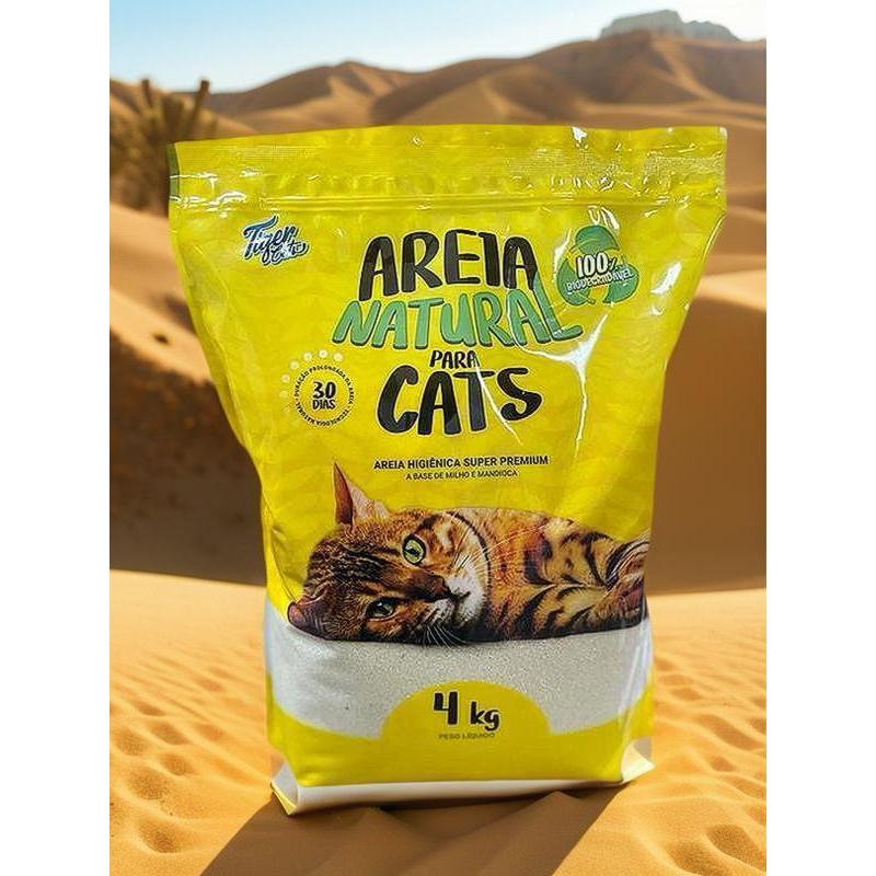 KIT COM 4 AREIA HIGIÊNICA NATURAL BIODEGRADÁVEL MILHO E MANDIOCA PARA GATOS TIGER CATS 2KG