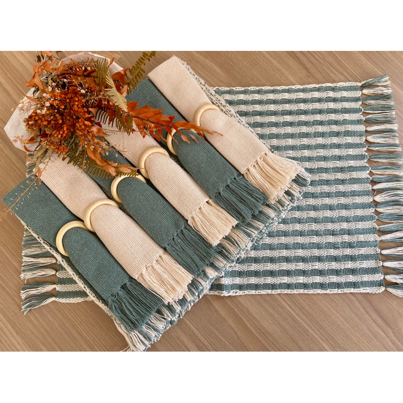 Kit Jogo Americano 6 Luagres Com Franja,Artesanato Mineiro, Tear, Decoração de Mesa, 100 % Algodão