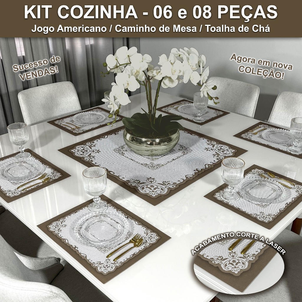 Kit De Cozinha 6 e 8 Peças Com Jogo Americano Toalha Chá e Caminho de Mesa Posta Tecido Estampado