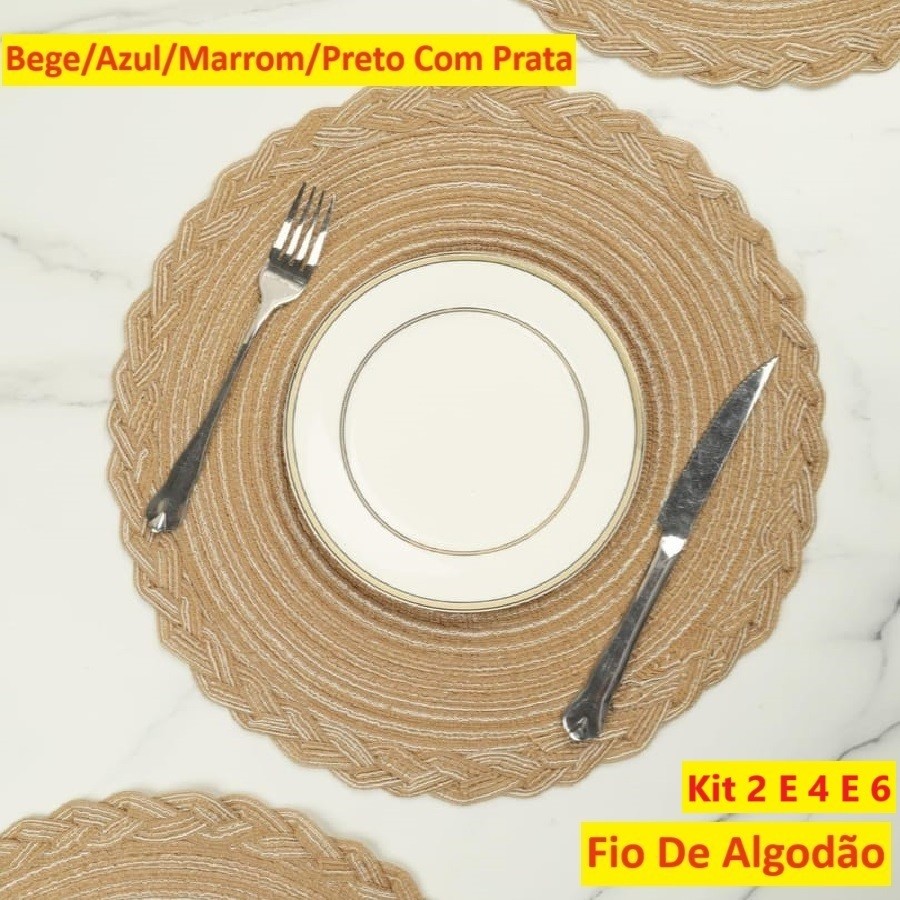 Oferta Jogo Americano Redondo Descanso Fio Algodão kit 6 4 E 2Un 38Cm Com Renda Para Mesa De Jantar universal