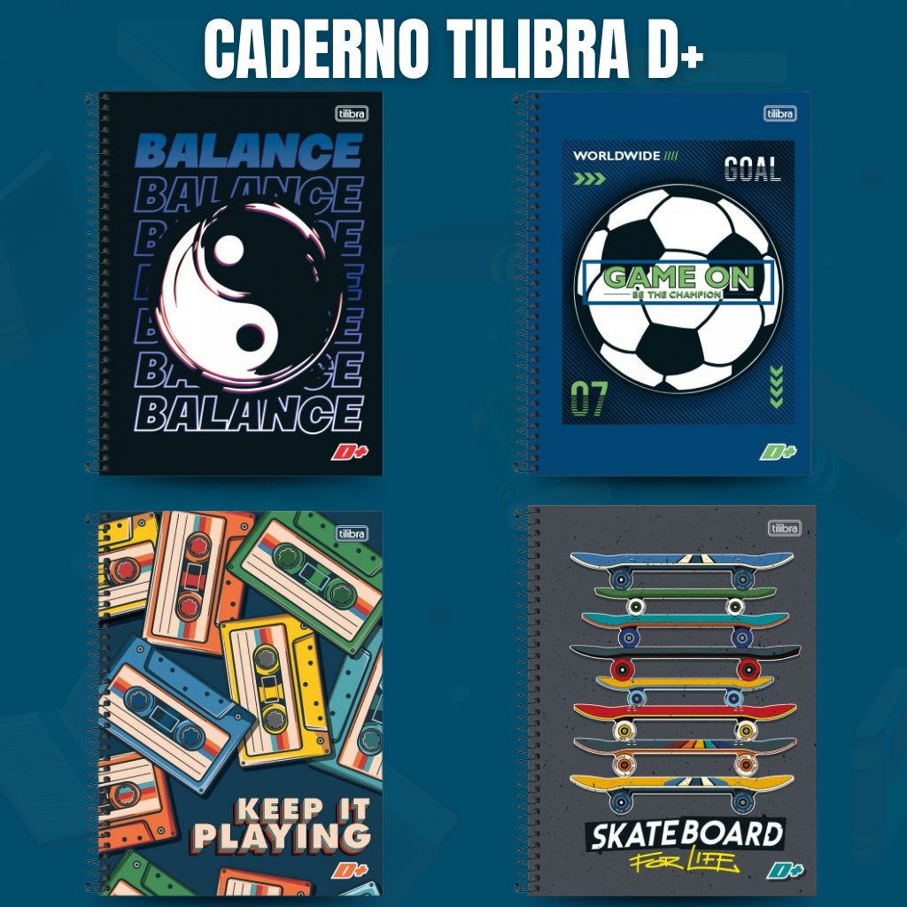 KIT 4 CADERNOS Capa Dura Universitário TILIBRA D+ 10 MATÉRIAS 200 FOLHAS grade Masculino/ Feminino