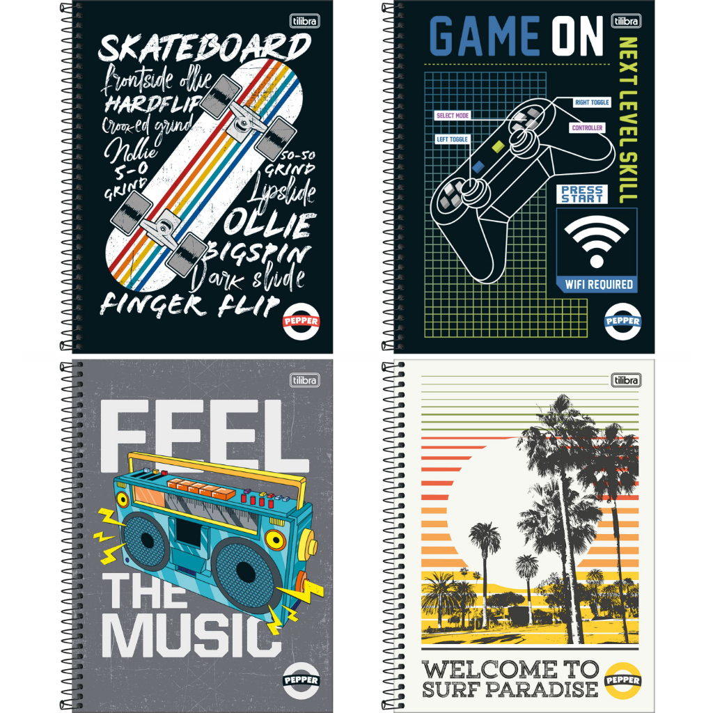 Kit 4 Cadernos Tilibra Pepper 1 Matéria Masculino Capa Dura