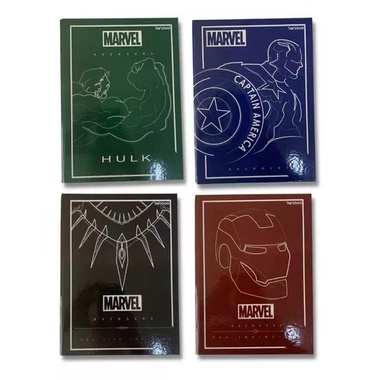 Kit 4 Cadernos Marvel Brochura Capa Dura Masculino Herói Pantera Negra Hulk Homem de Ferro Capitão América 1 Matéria
