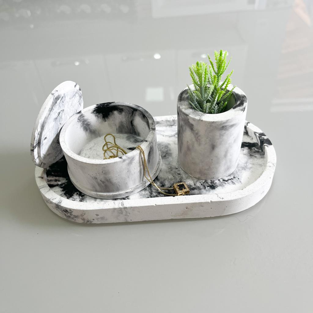 Kit Porta Joia Decoração + Bandeja + Mini Vaso Circular luxo