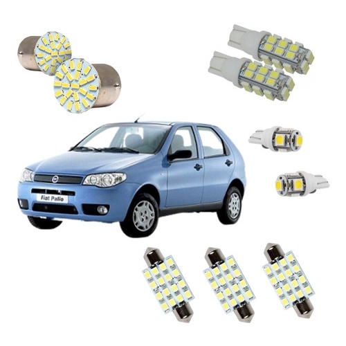 Kit Fiat Palio Lampadas Led Pingo Teto Placa Meia Luz Ré