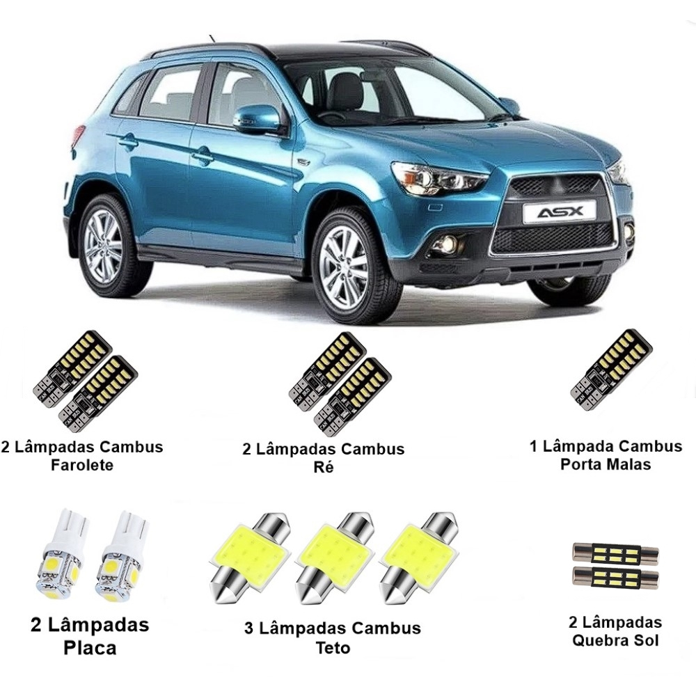 Kit Lâmpadas Led Mitsubishi ASX Ré Meia-luz Porta Malas Teto Luz Pingo Teto Placa Xenon