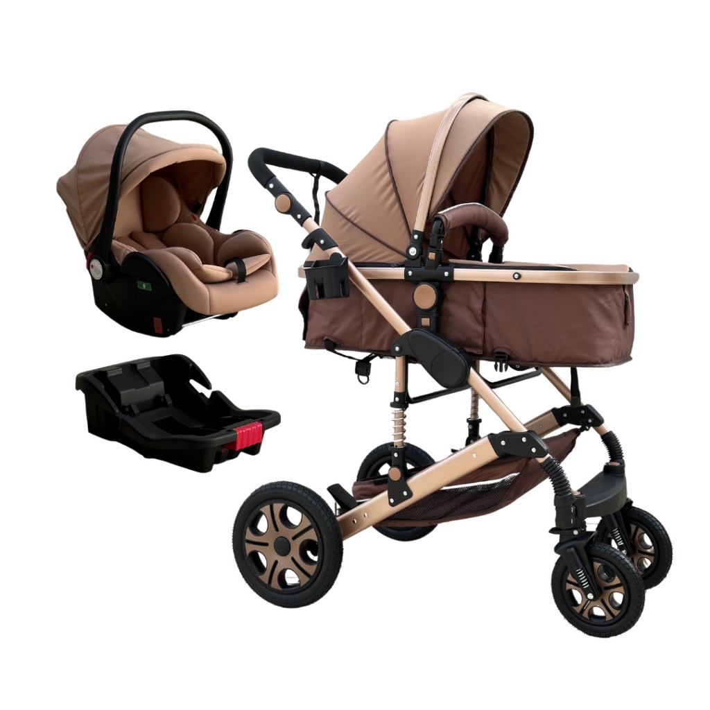 Carrinho de Bebê Europeu 3 em 1 Kit Completo Moises + Bebe Conforto + Base Veicular + Bolsa