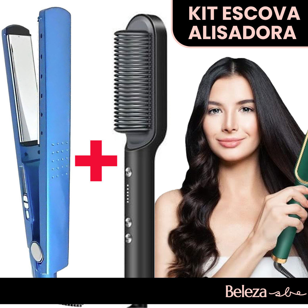 Escova Kit Alisadora Bivolt 5 em 1 + Chapinha de Cabelo Nano Titanium 450°