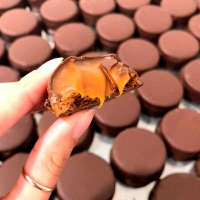 Mini alfajor bocadito doce de leite e chocolate qualidade belga