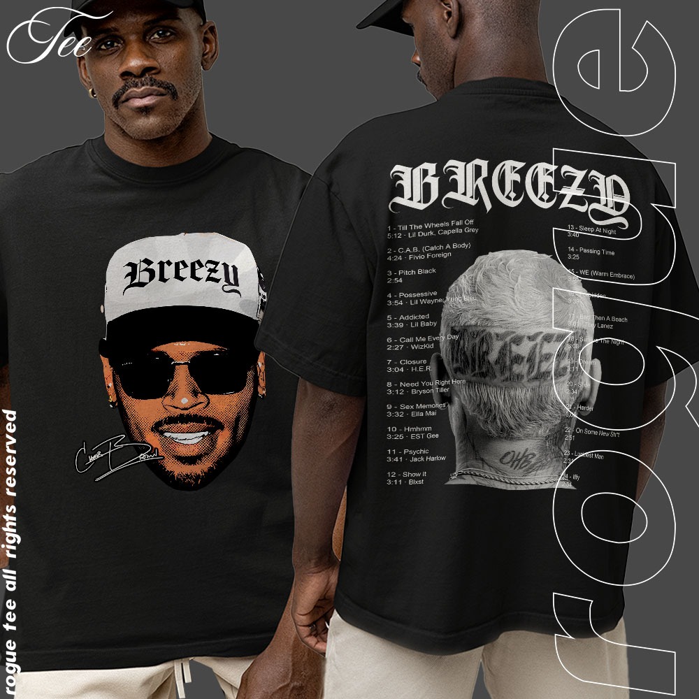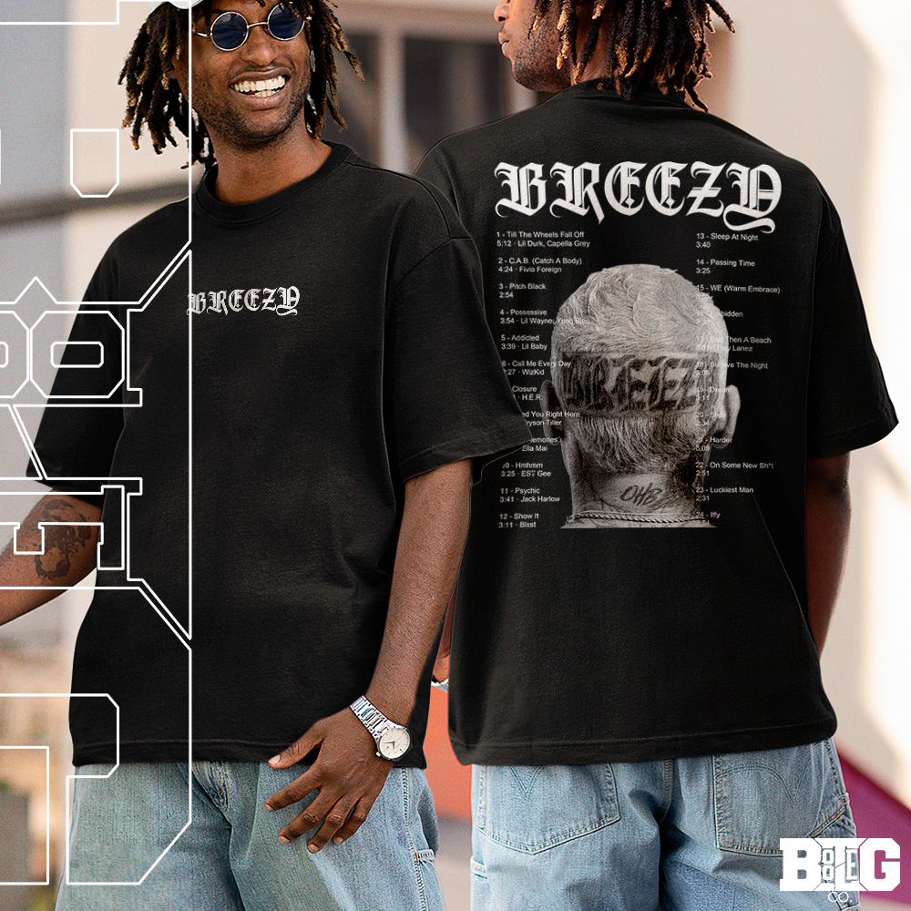 Camiseta Basica e OVERSIZED Chris Brown Breezy Release Album Graphic Tee World Tour Unissex